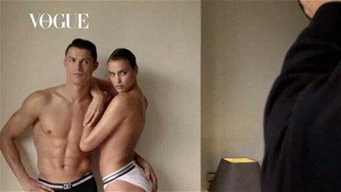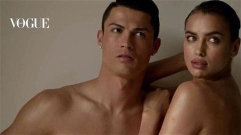 ظهر مهاجم  فريق نادي ريال مدريد لكرة القدم، البرتغالي كريستيانو رونالدو عارياً على غلاف مجلةVogue  العالمية بنسختها الاسبانية، مع صديقته عارضة الازياء العالمية الروسية الاصل أيرينا شايك.