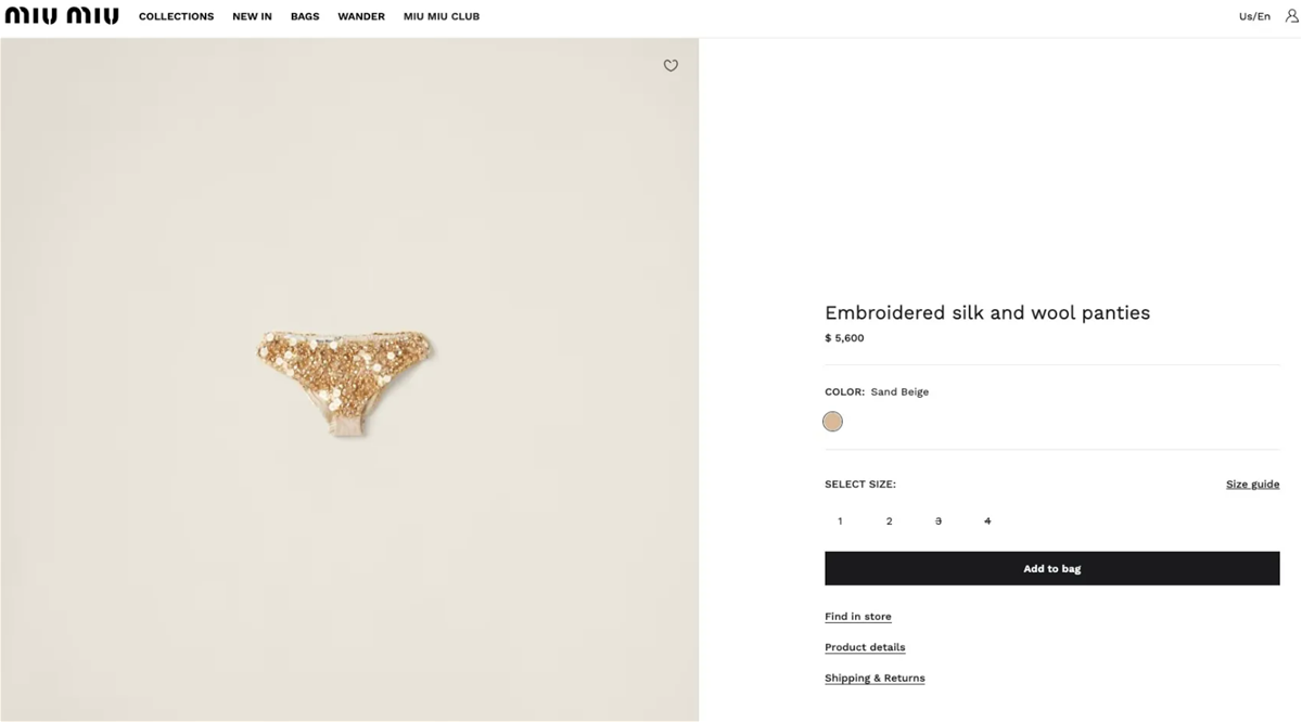 قد تكون ملابس Miu Miu الداخلية المصنوعة من الترتر والحرير والصوف، والتي يصل سعرها إلى 5600 دولار، أغلى قطعة ملابس داخلية في العالم.