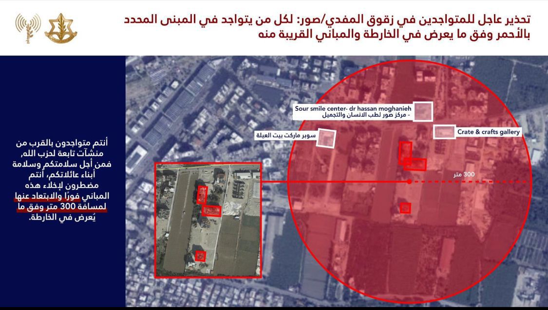 الجيش الإسرائيلي يوجه إنذارًا الى سكان مدينة زقوق المفدي في صور