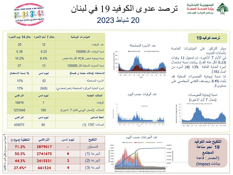 أعلنت وزارة الصحة العامة تسجيل 100 إصابة جديدة بكورونا وحالة وفاة واحدة في الساعات الـ24 الماضية.