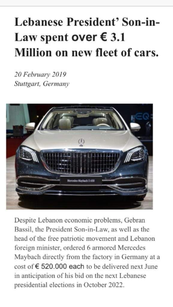 وكانت احدى الصفحات نشرت على فيسبوك في لبنان صورة لخبر مجهول المصدر يتضمن الشائعة قبل أن تعود وتزيله ، ويتحدث الخبر عن شراء الوزير باسيل 6 سيارات مصفحة من طراز مايباخ مباشرة من المصنع في المانيا بقيمة تتخطى 3.1 مليون يورو على ان يتم تسليمها في حزيران المقبل.