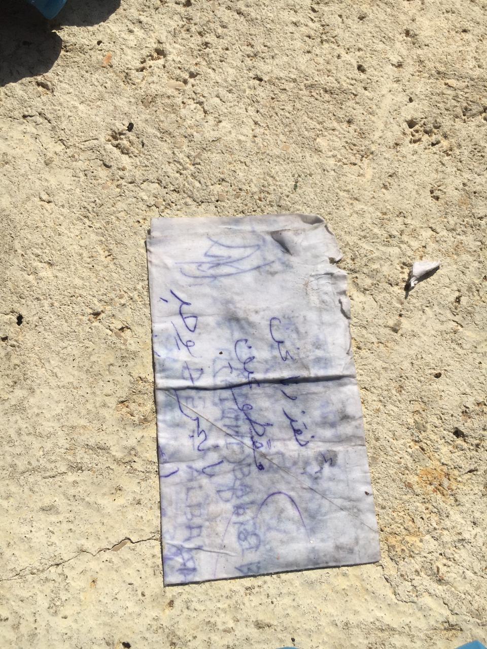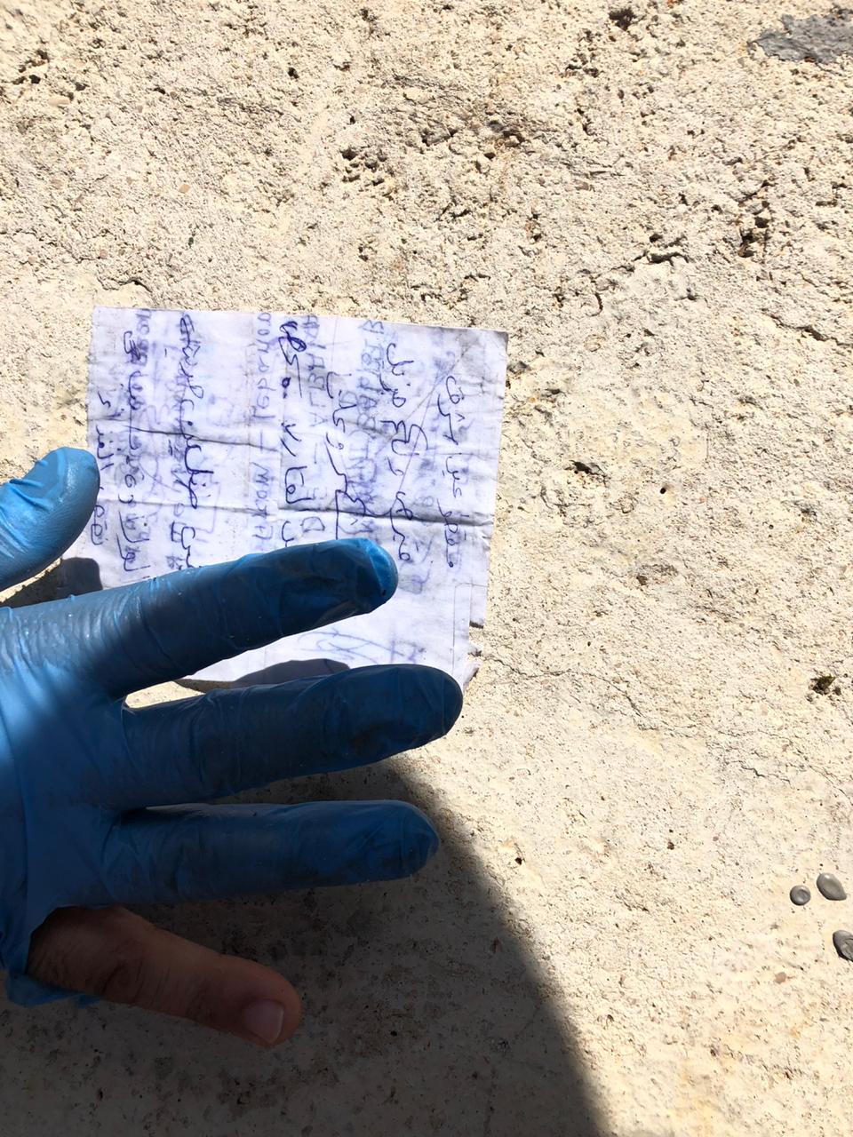 إشارة الى أن الرسائل وجدتها عناصر الإنقاذ البحري بعد فك الحزام المربوط على الجثة.