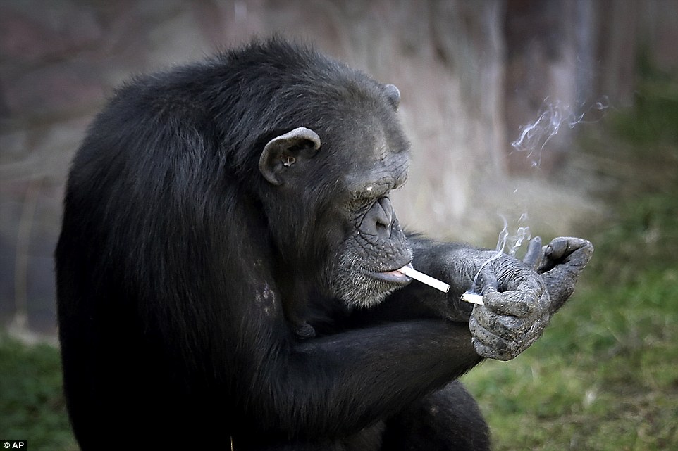 بالصور: شمبانزي يدخّن 20 سيجارة في اليوم!