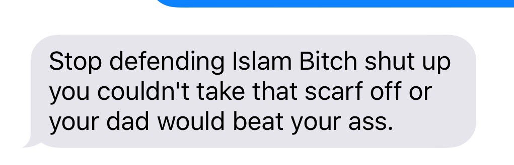 وبحسب لميا، أثناء إحدى الدردشات الجماعية التي تجمعها بأصدقائها تطرقت المناقشات إلى الرئيس الأميركي دونالد ترامب والقضايا السياسية المطروحة، وعندما كشفت لميا عن هويتها كمسلمة قام أحد المشاركين في الدردشة بمطالبتها بالتوقف عن الدفاع عن الإسلام؛ وتحداها إن كانت تجرؤ على خلع الحجاب لأن والدها قد يعتدي عليها بالضرب.
