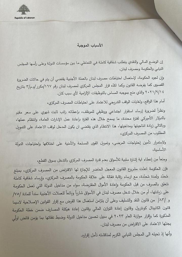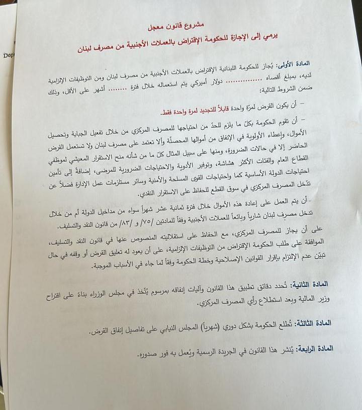 LBCI has obtained a draft of the government's proposed law, which aims to authorize the government to borrow in foreign currencies under the following conditions: