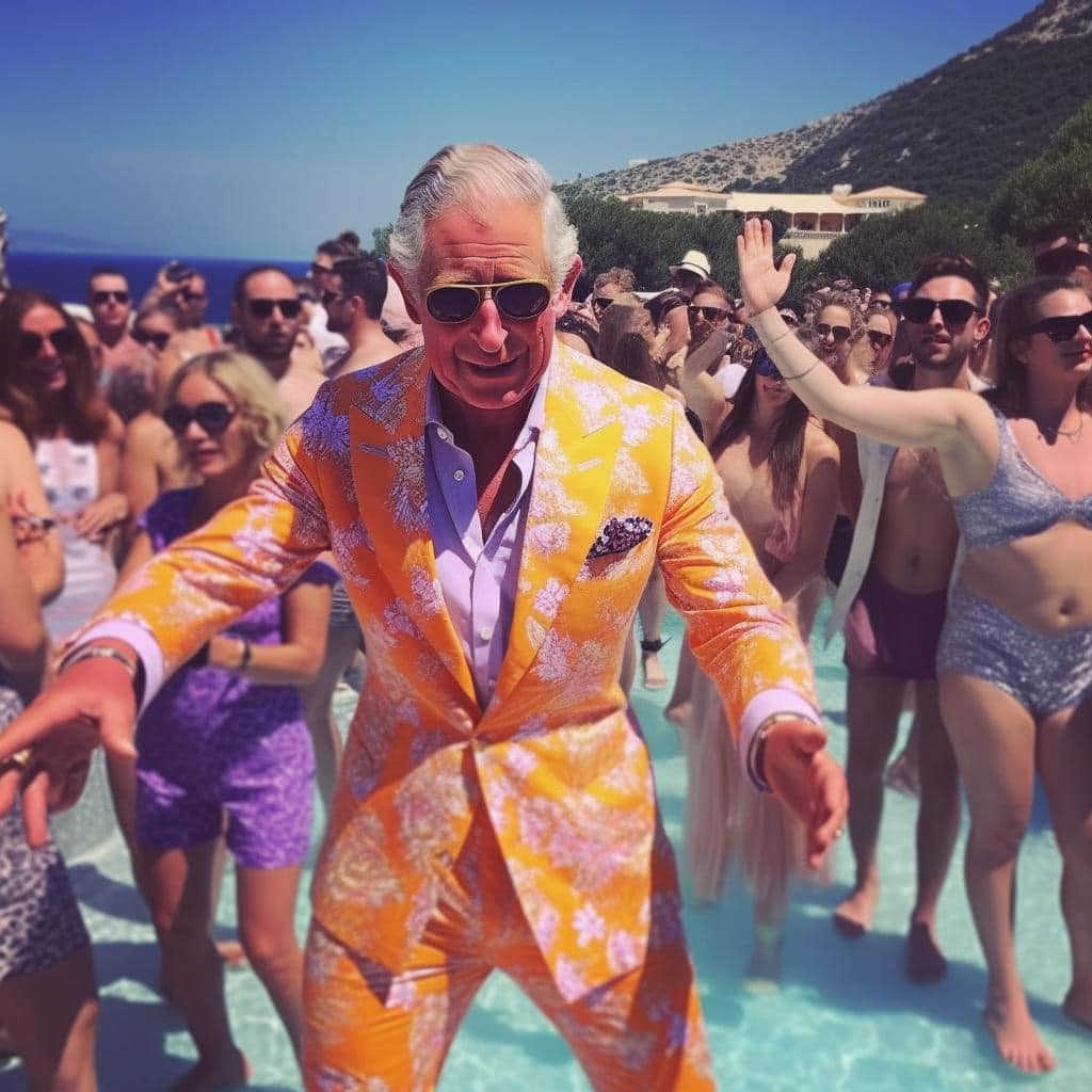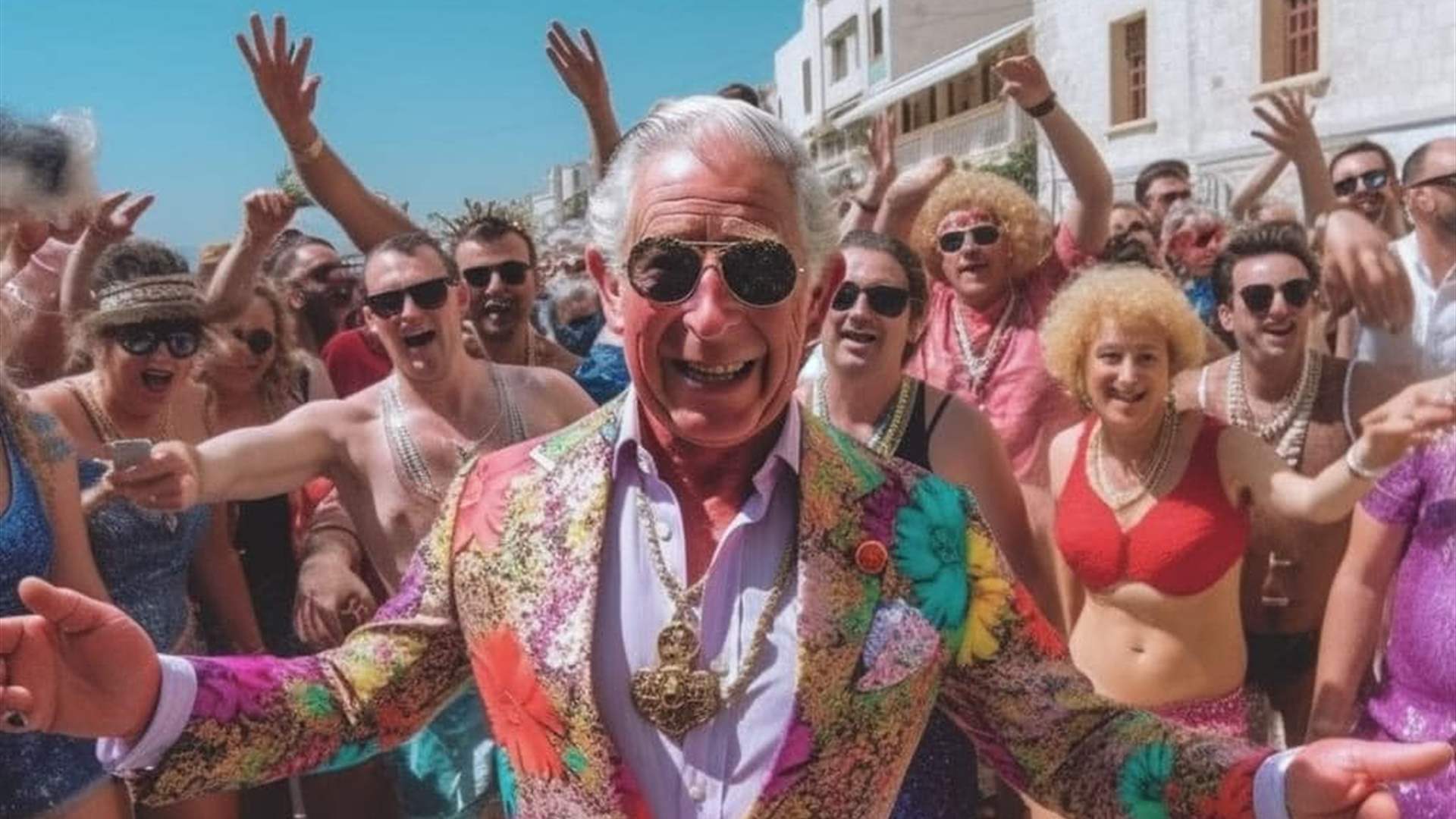 يتداول مستخدمون لمواقع التواصل الاجتماعي صوراً ادّعى ناشروها أنّها تظهر الملك تشارلز محتفلاً على شاطئ وهو يرتدي ملابس بألوان زاهية. إلا أنّ هذه الصور ليست حقيقيّة بل مصمّمة باستخدام برنامج ذكاء اصطناعي لتوليد الصور، نقلا عن فرانس برس.