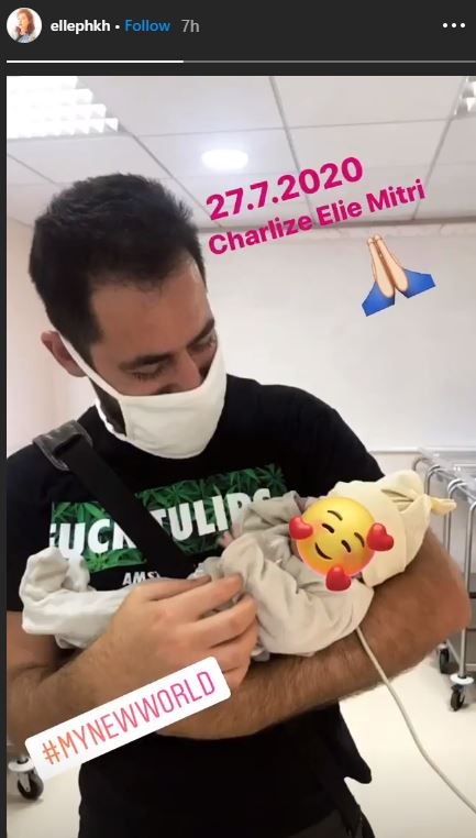 فقد نشرت زوجة إيلي متري صورة عبر خاصية الـStory، يظهر فيها الممثل وهو يحضن ابنته للمرّة الأولى في المستشفى، فيما كان يرتدي الكمامة.