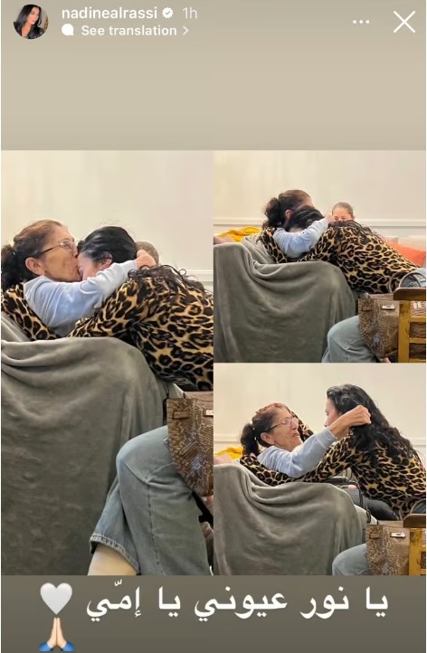ونشرت نادين الراسي الصور الأولى لوالدتها بعد خروجها من المستشفى، وظهرت وهي تحضنها بحنان، وعلّقت بالقول "يا نور عيوني يا أمّي".