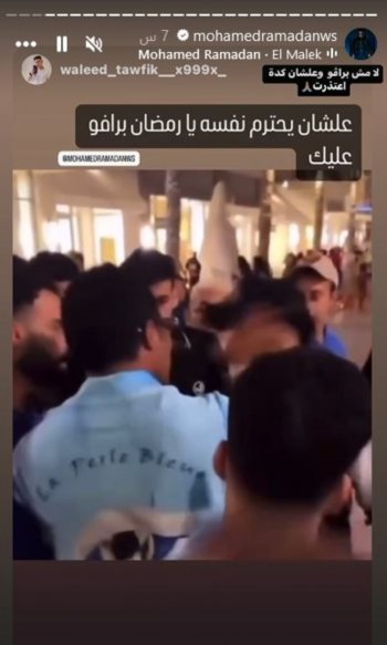 وفي التفاصيل، أعاد أحد المتابعين مشاركة مقطع الفيديو الشهير عبر خاصية الستوري، وكتب: "علشان يحترم نفسه يا رمضان برافو عليك"، ليقوم محمد رمضان بإعادة نشره قائلا: "لا مش برافو وعلشان كدة اعتذرت".