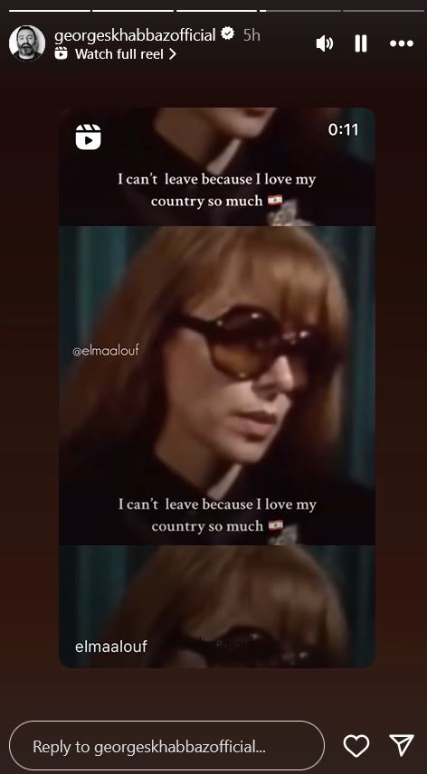 كذلك، عايد جورج خباز السيدة فيروز من خلال مشاركة مقطع فيديو تصويري وتعبيري يتضمن أجمل المشاهد والمعالم في لبنان مرفقًا بلقطة لها في إحدى المقابلات، حيث قالت باللغة الانكليزية: "لا أستطيع المغادرة لأنني أحب وطني كثيرًا".