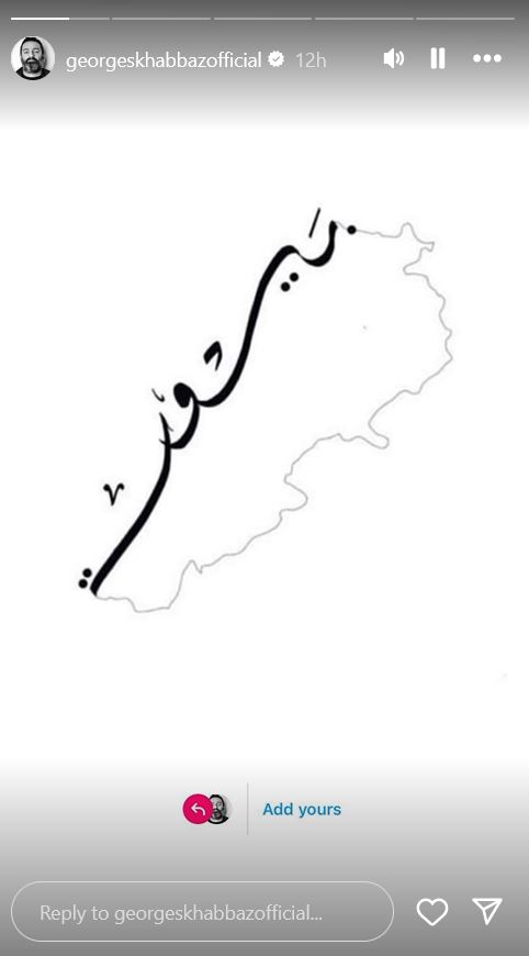 وشارك جورج خباز مجموعة من الصور ومقاطع فيديو عبر خاصية الستوري على منصة إنستغرام، بما في ذلك صورة لخريطة لبنان التي تضمنت كلمة بيروت على طول الـ10452 كلم مربّع.