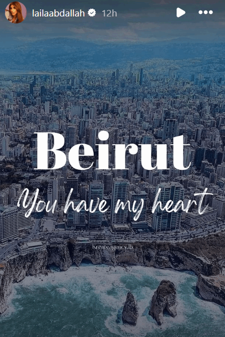 نشرت الممثلة اللبنانية الكويتية ليلى عبد الله صورة متداولة لمدينة بيروت عبر خاصية القصص القصيرة في حسابها عبر موقع انستغرام.