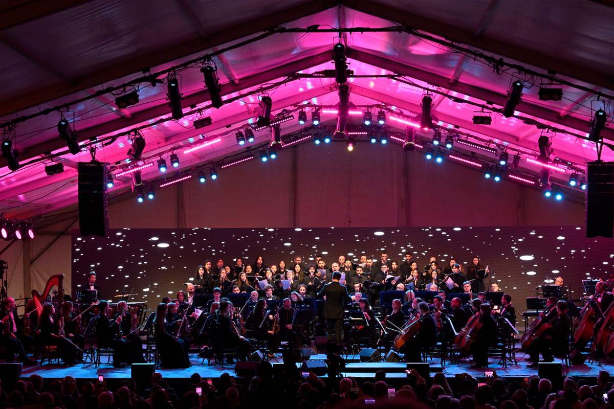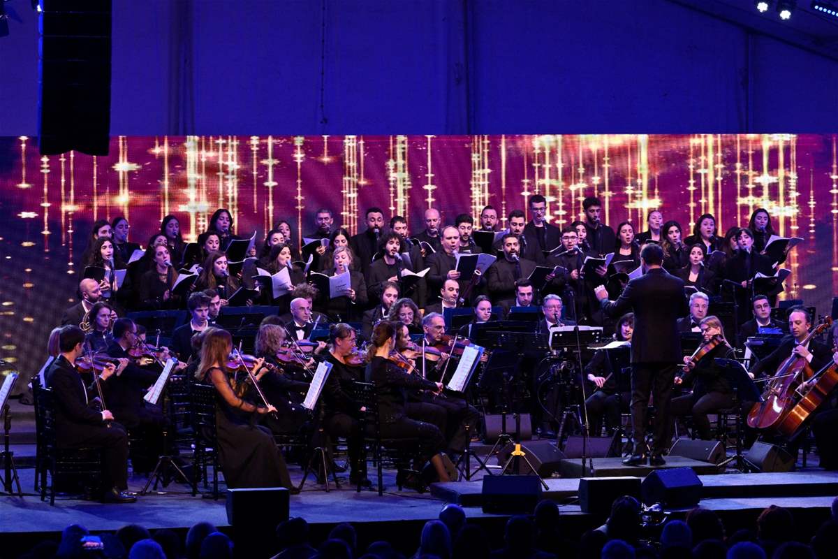 وأحيت الحفل الأوركسترا الفلهارمونية الوطنية وجوقة جامعة سيدة اللويزة بإدارة الأب خليل رحمة ومشاركة التينور العالمي إيليا فرنسيس بقيادة المايسترو لبنان بعلبكي، في برنامج موسيقي تحت عنوان "تآلفات مقدسة واحتفالية: إضاءة روح الميلاد بكل بهائها". برنامج بعث الفرح والرجاء والأمل والشعور بمعاني العيد، وذلك من خلال الموسيقى الميلادية الكلاسيكية والترانيم والألحان الخاصة بالميلاد. فامتزجت في الحفل روائع الموسيقى الكلاسيكية العالمية بنفحات من التراث الميلادي العريق، لتقدم مزيجاً فريداً يحاكي جوهر العيد وعمقه الروحاني.
