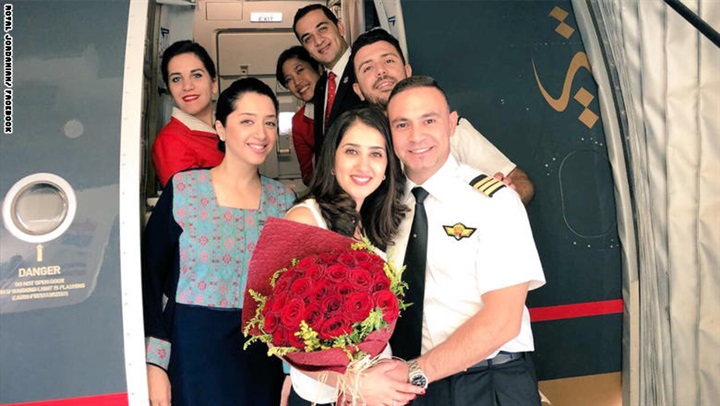 فاجأ مساعد كابتن طائرة تابعة للخطوط الملكية الأردنية المسافرين على متن الرحلة التي كانت متوجهة من عمان إلى دبي، عندما قرر أن يطلب يد حبيبته التي كانت تجلس بين الركاب.