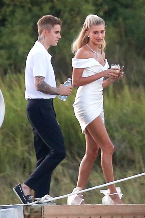 وظهرت هايلي (22 عامًا) بفستان أبيض قصير أما جاستين بيبر (25 عاماً) فظهر بإطلالة كاجوال.