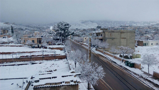 In Iqlim al-Tuffah, the snow reached a thickness of 50 cm, blocking all roads in the area.