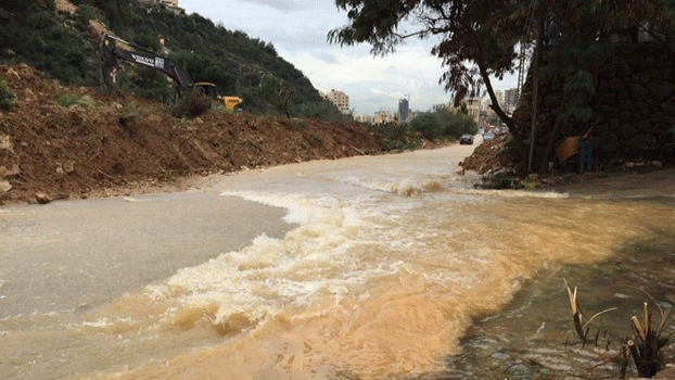 Storm Windy has been hitting Lebanon for the third day, where it caused a mudslide near Fawar Antelias River, leading the river to flood and block the road. Sources told LBCI that the illegal works ongoing in the mountain near the river caused the mudslide.