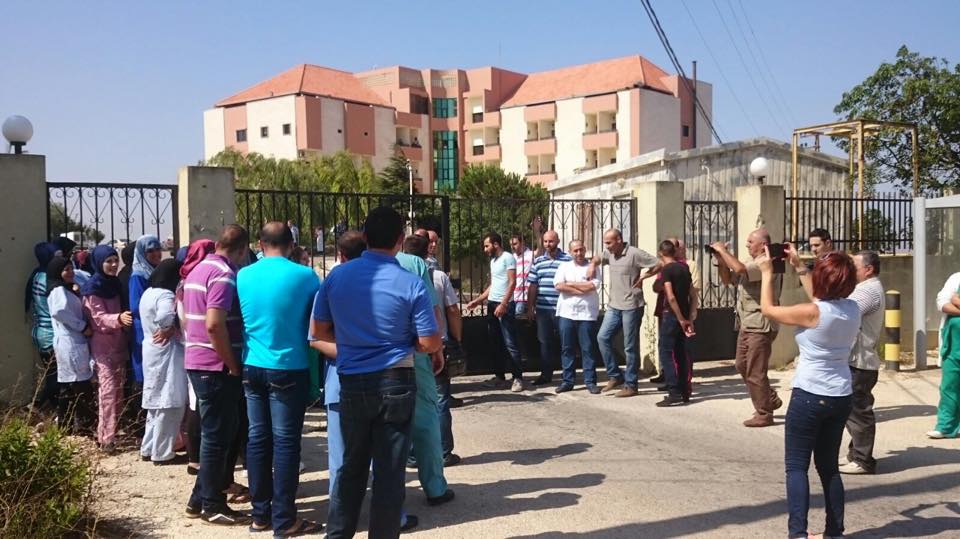 Employees of the Mays al-Jabal governmental hospital blocked on Tuesday morning the entrance of the medical facility to protest the failure to pay their salaries for over months.