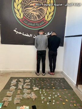 كما دهمت قوة من الجيش في المنطقة المذكورة منازل مطلوبين وأوقفت المواطنَين (م.ح.) و(م.م.) لإقدامهما على تعاطي المخدرات وترويجها، وإطلاق النار، وافتعال إشكالات، وضبطت في حوزتهما: مسدسين حربيين، 60 عبوة من باز الكوكايين، 20 كيساً متوسط الحجم من الحشيشة، 18 عبوة و9 مظاريف من الكوكايين، هاتفاً خلوياً، دراجتين ناريتين، مبلغاً مالياً.