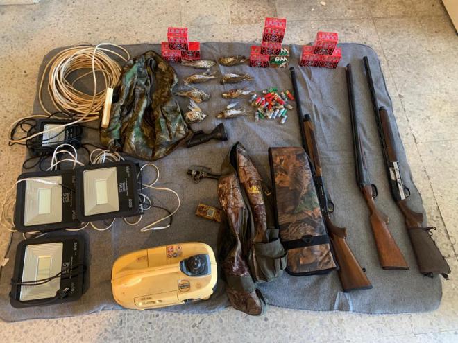 حيث تم ضبطهم بالجرم المشهود، وفي حوزتهم بنادق صيد و ٢٧٥ خرطوشة من عيار ١٢ملم. وجعبتي صيد وأربعة مصابيح إنارة ووصلات كهربائية ومولّد كهربائي وكاشف ليلي و"لايزر" وآلة لجذب الطيور. إضافةً إلى ضبط ثماني طرائد من نوع "السّمّن".