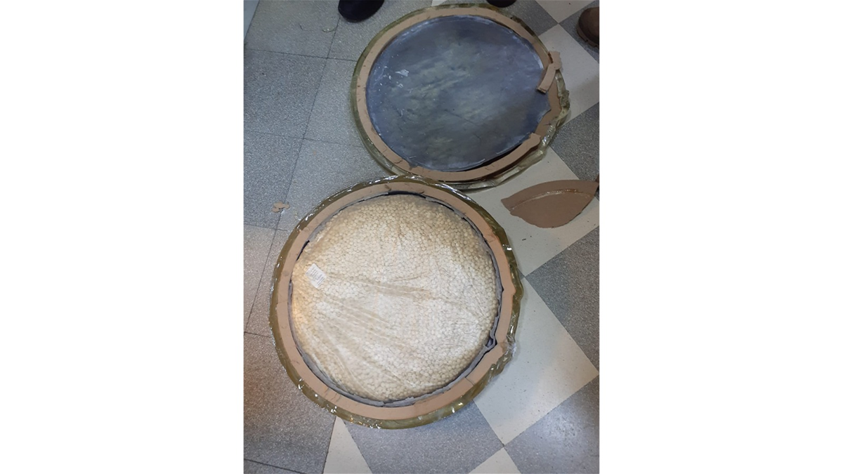 بتفتيش اللوحة، تبيّن أنها تحتوي على /6،65/ كلغ من حبوب الكبتاغون.