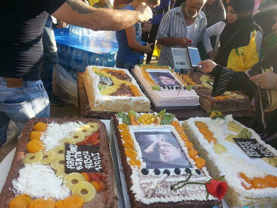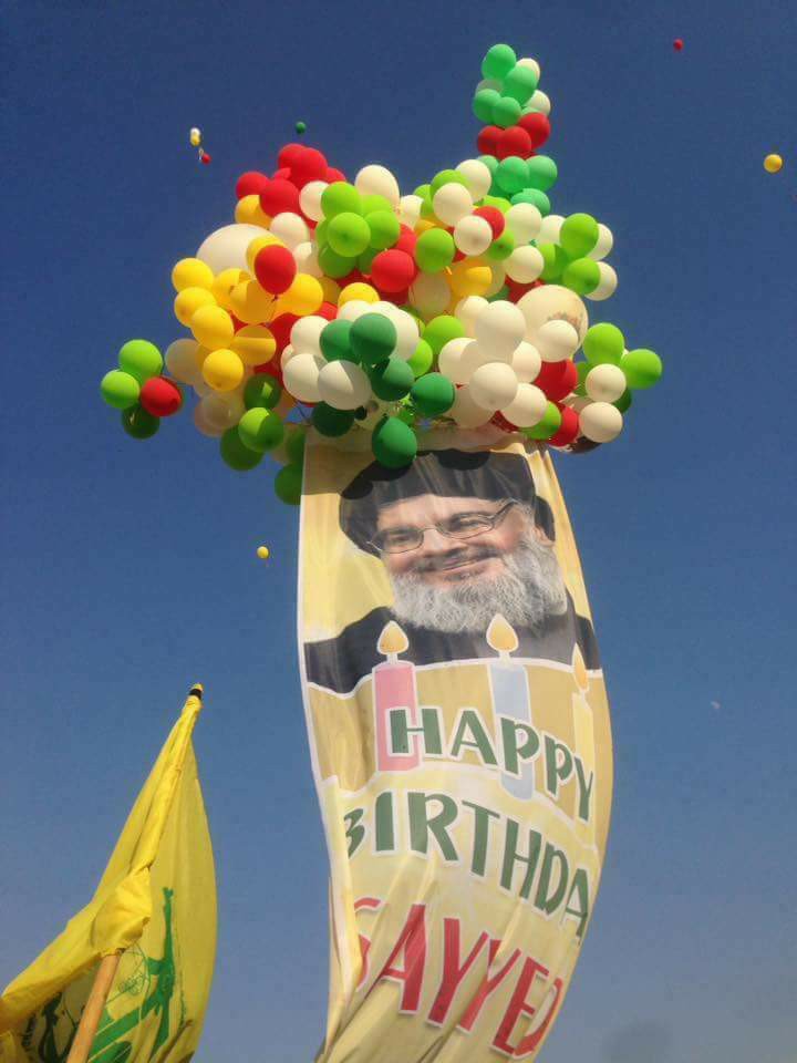 خلال مهرجان "التحرير الثاني" في بعلبك، جرى الاحتفال بعيد ميلاد الامين العام لحزب الله السيد حسن نصرالله عبر تطيير البالونات وتجهيز قوالب الحلوى وحمل شعارات تعايد نصرالله بحسب الصور التي نشرت على مواقع التواصل الاجتماعي.