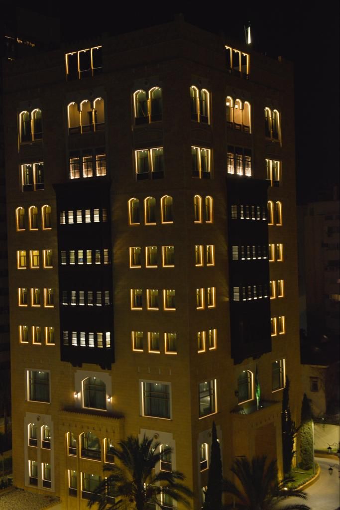 ويذكر أن مبنى السفارة يتوشح للمرة الأولى بتقنية الكريستال لايت، إحتفالاً باليوم الوطني السعودي الـ(93)، تحت شعار "نحلم ونُحقق".