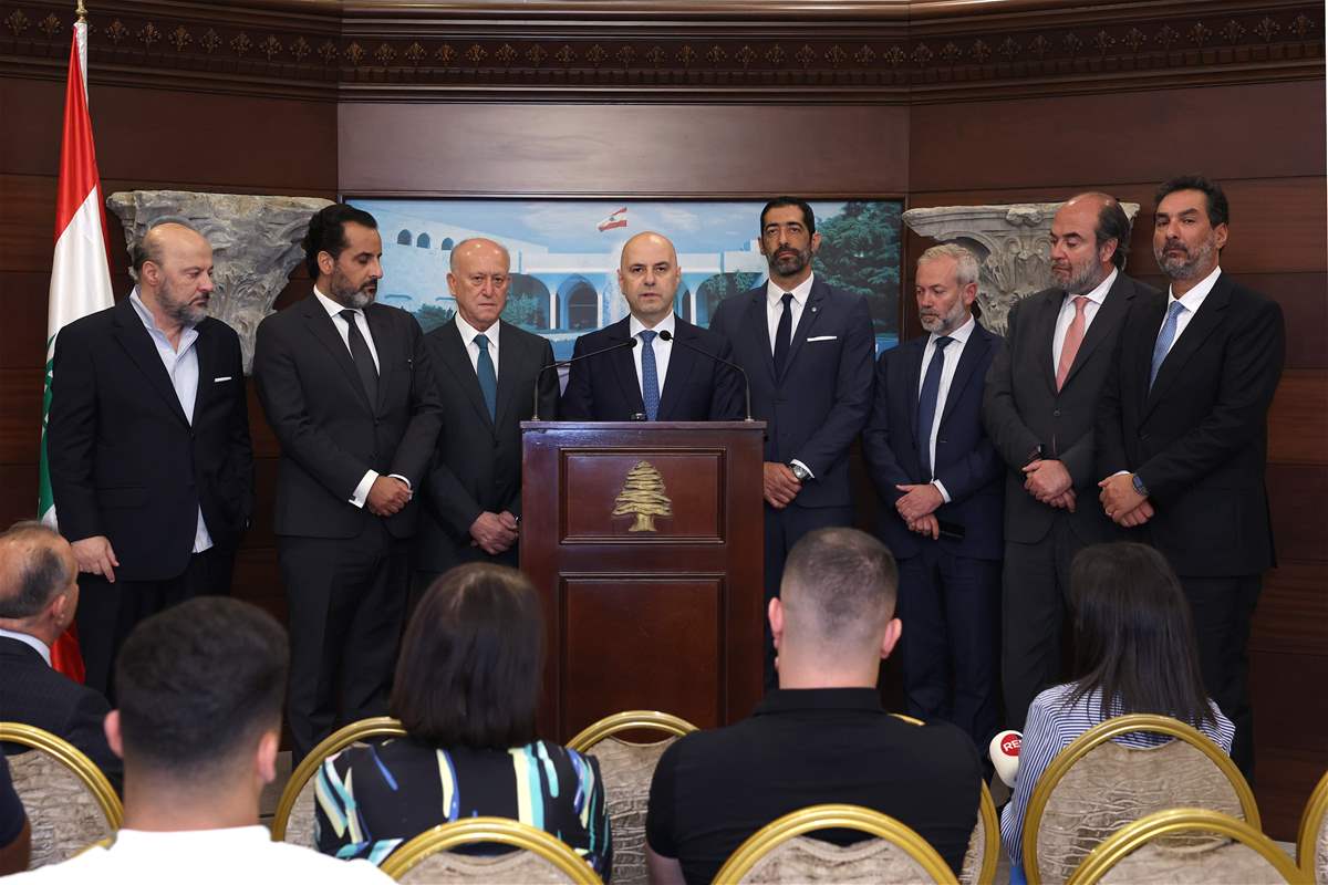 وبعد اللقاء، تلا النائب حاصباني للصحافيين بيانا باسم المجموعة النيابية، جاء فيه: "نحن، مجموعة من النواب الموقعين على اقتراح قانون تصويت المغتربين، وبعد زيارتنا اليوم رئيس الجمهورية، نعلن ما يلي: كنا قد تقدمنا في التاسع من أيار باقتراح قانون معجل مكرر يرمي إلى تصحيح الخلل في قانون الانتخابات النيابية المتعلق بتصويت اللبنانيين المنتشرين في الخارج، وقد حاز هذا الاقتراح تأييد ٦٧ نائبا. ومع ذلك، لم يدرج حتى الآن على جدول أعمال الهيئة العامة لمجلس النواب. كما كنا قد وجهنا عريضة نيابية إلى رئيس مجلس النواب طالبنا فيها بإدراج الاقتراح للنقاش والتصويت، غير أن هذه المطالب لم تلق التجاوب المطلوب حتى الساعة. واليوم، جئنا إلى رئيس الجمهورية وتداولنا معه في ضرورة معالجة الخلل القائم في قانون الانتخابات النيابية الحالي، ولا سيما في ما يتعلق بحق اللبنانيين المنتشرين حول العالم بالمشاركة في العملية الانتخابية من خلال التصويت للنواب في دوائر نفوسهم. وقد تمنينا على الرئيس الطلب من الحكومة المبادرة، وبأسرع وقت، إلى إعداد وإرسال مشروع قانون معجل بمرسوم إحالة إلى مجلس النواب لتصحيح هذا الخلل، خصوصا بعد أن كانت الحكومة نفسها قد أشارت سابقا إلى الغموض والالتباس القانوني الذي يعتري النص الحالي، لا سيما في ما يتعلق بتوزيع المقاعد الستة المخصصة للمغتربين على القارات".