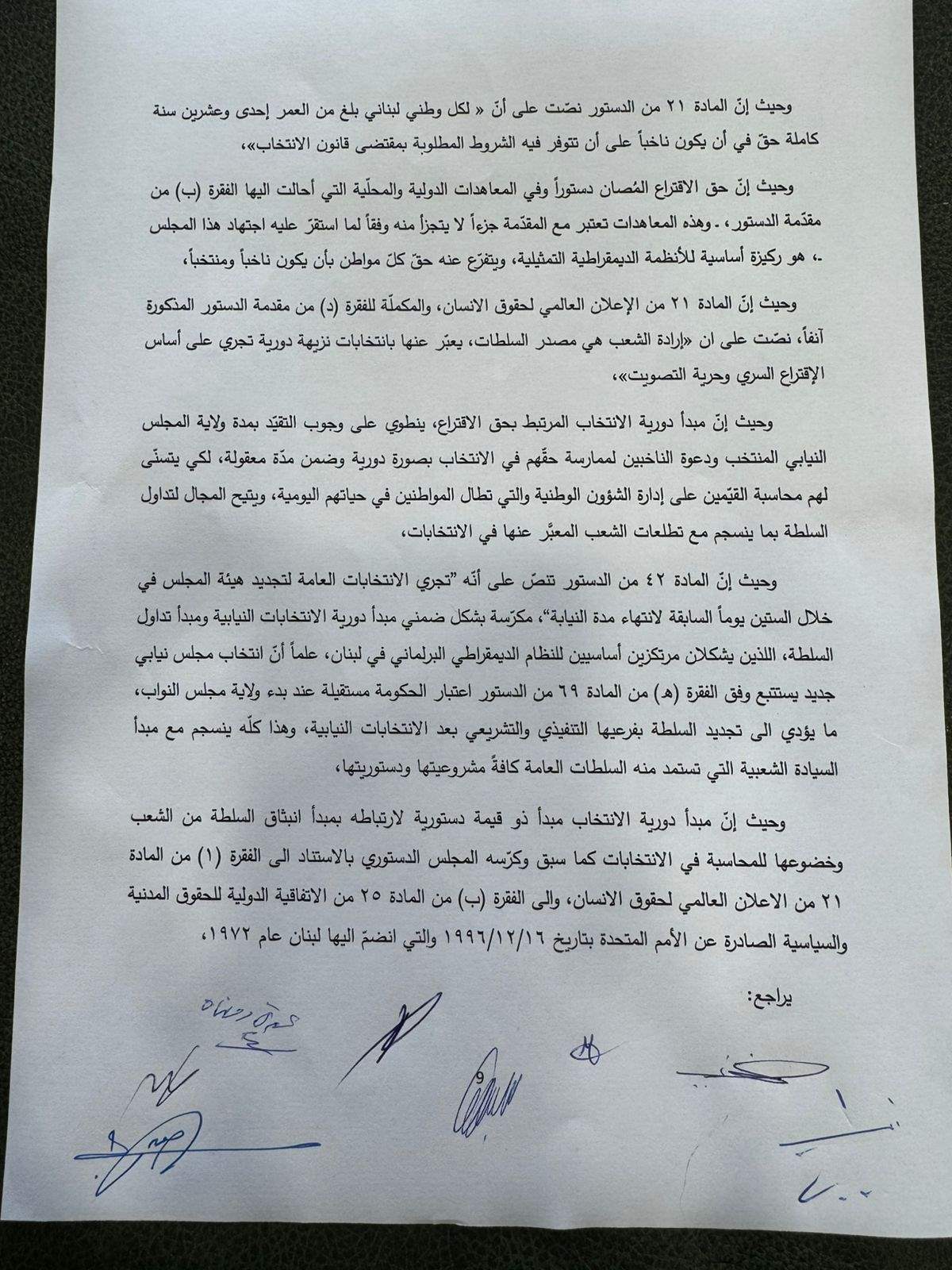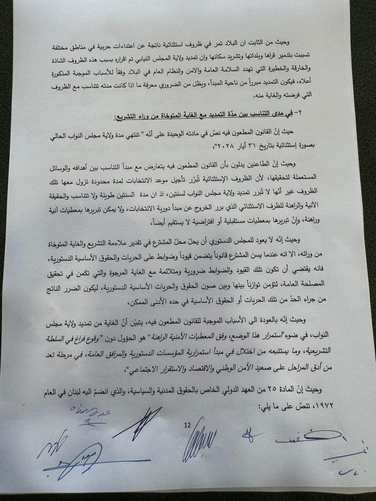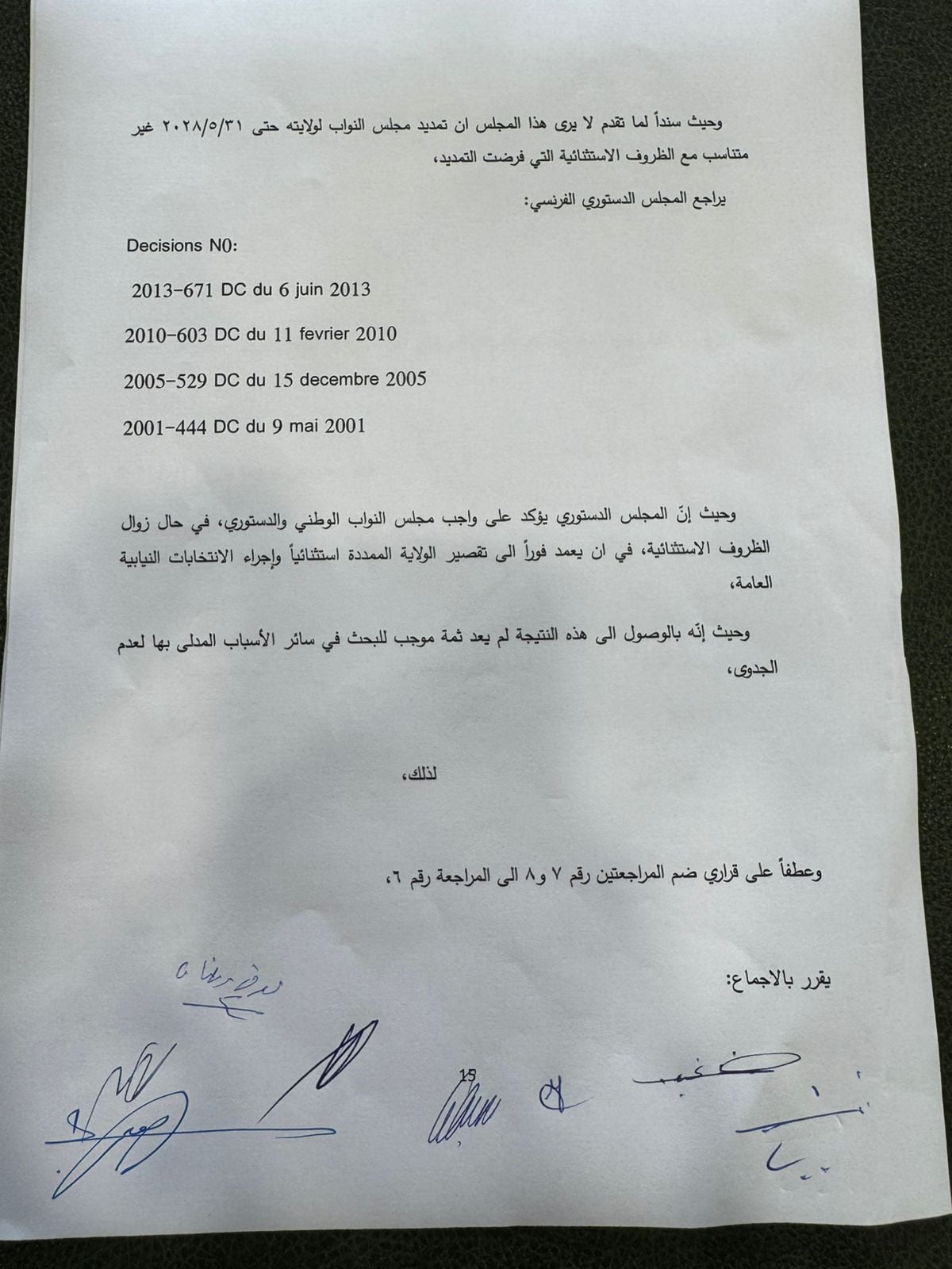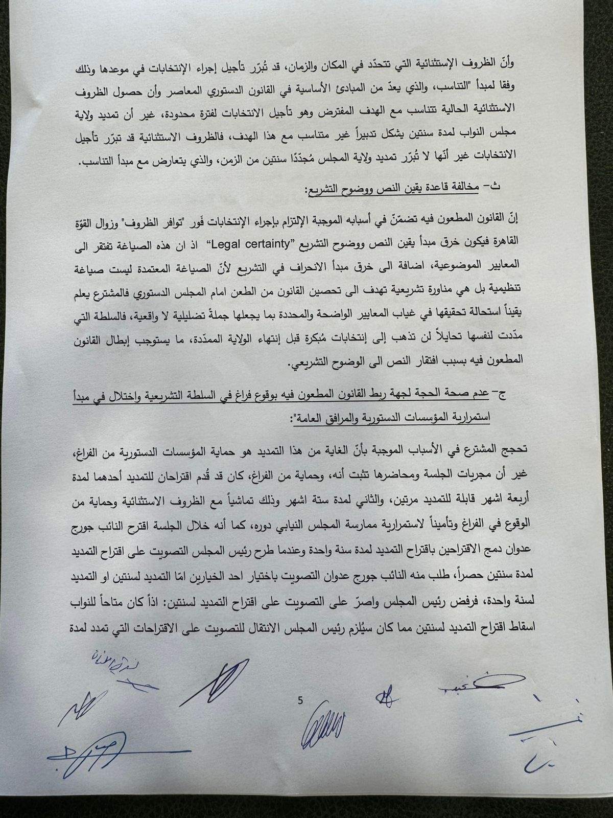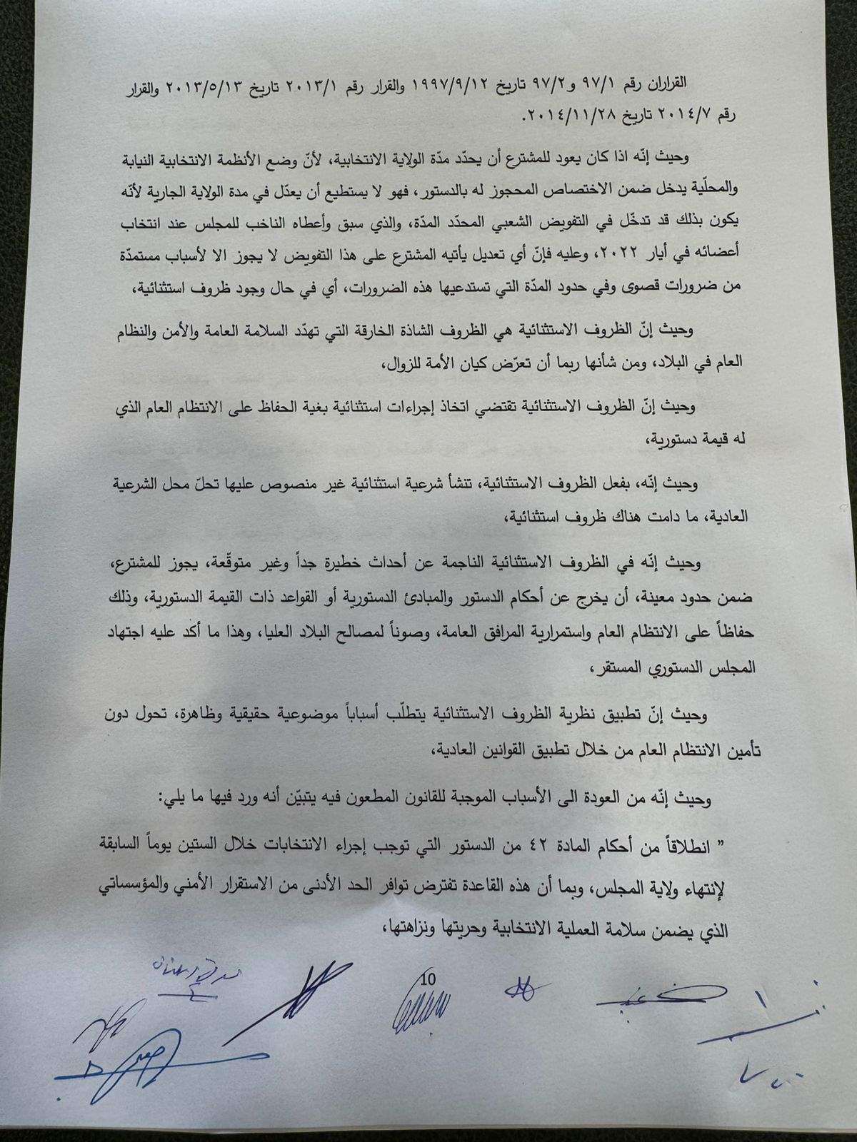 رد المجلس الدستوري بالإجماع الطعون الثلاثة المقدمة من "القوات اللبنانية" و"التيارالوطني الحر" وعدد من النواب التغييريّين بالتمديد لمجلس النواب واكد وجوب تقصير الولاية الممدّدة متى انتفت الحالة الطارئة"، واعتبر أنّ "تقصير الولاية موجب وطني ودستوري".
