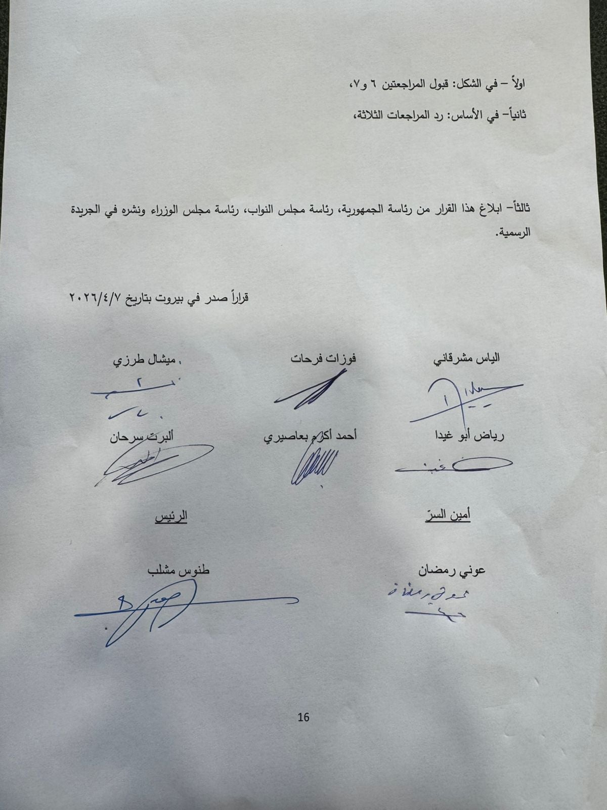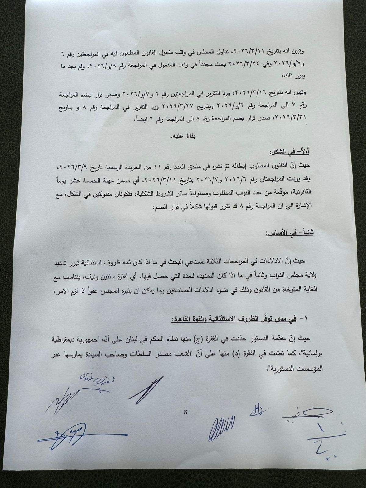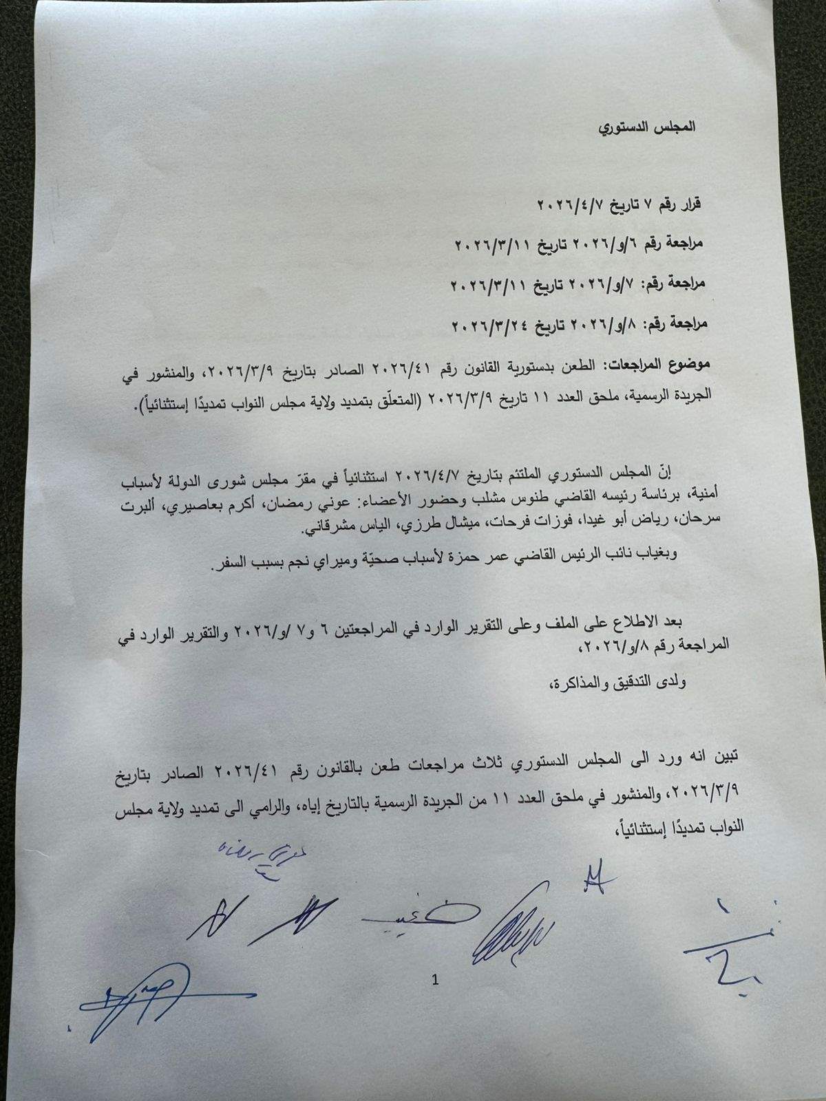 وكان قد اجتمع المجلس الدستوري في مجلس شورى الدولة بصورة موقته بكامل اعضائه وغياب القاضي عمر حمزة بداعي المرض.