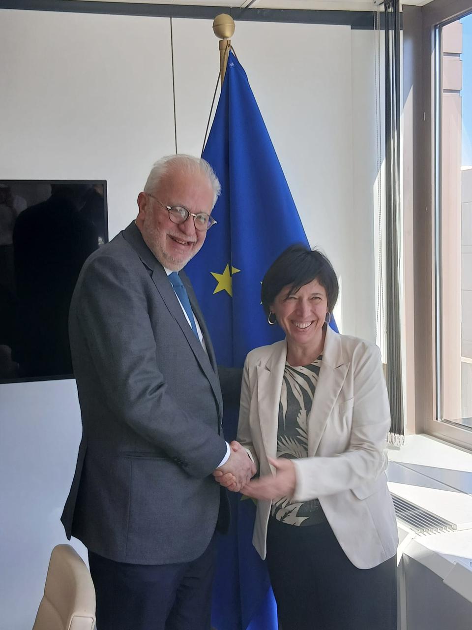 كما التقى كبار المسؤولين في بروكسل، شملت المديرة العامة للعدالة والمستهلكين في المفوضية الأوروبية آنا غاليغو تورّيس (Ana Gallego Torres) والمدير العام بالإنابة للمديرية العامة للشرق الأوسط وشمال أفريقيا والخليج في المفوضية الأوروبية ميشائيل كارنيتشنيغ (Michael Karnitschnig) والممثّلة الخاصة للاتحاد الأوروبي لحقوق الإنسان كايسا أولونغرن (Kajsa Ollongren) والمديرة الإدارية لمنطقة الشرق الأوسط وشمال أفريقيا في الدائرة الأوروبية للشؤون الخارجية هيلين لو غال (Hélène Le Gal).