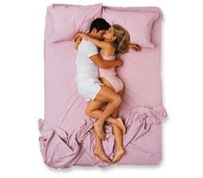 هذه هي وضعية النوم الأكثر حميمية بين الرجل وزوجته ويُشار إليها أحياناً بوضعية الزوج والزوجة في شهر العسل. ويلجأ الأزواج عادة إلى هذه الوضعية بعد ممارسة العلاقة الحميمية بينهما أو في بداية الزواج. وفي حين يحافظ الكثيرون عليها بعد سنواتٍ من الزواج إلا أنها ترمز إلى تعلّق الشريكين واعتمادهما على ببعضهما البعض في كلّ شيء.