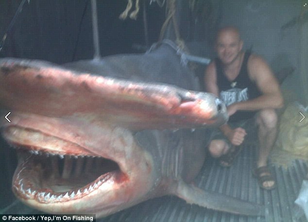 التقط صياد يدعى مارك ديكسون صورة مع قرش رأس المطرقة (hammerhead shark) المرعب الذي أمسك به قبالة سواحل أستراليا والذي يبلغ طوله حوالي 5.1816 متراً.