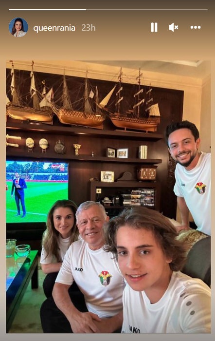 شاركت الملكة رانيا الأردنية صورة عائلية على تطبيق انستغرام، من قلب المنزل لمتابعة مباراة كرة القدم ودعم المنتخب الأردني الذي نافس منتخب إسبانيا الخميس في ستاد عمان الدولي.