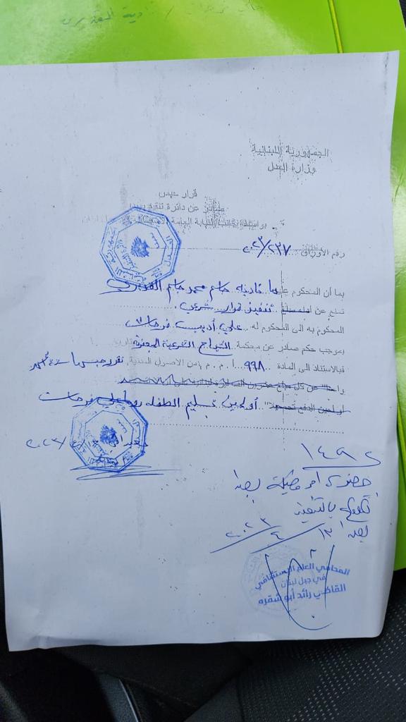 كما صدر قرار عن المحكمة الجعفرية بشأن حضانة الطفلة وتجدونه موثقاً في الصور أدناه.