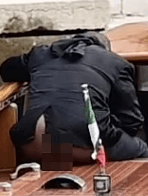 وبدا أن الزوجين غير مدركين لمجموعات السياح الذين يبحرون أمامهم وهواتفهم مرفوعة عالياً وهما يستعرضان مشهدهما الغرامي، وهو الأحدث في سلسلة من النزهات العامة التي تجاوزت الحدود وتسببت في فضيحة بين السكان المحليين الإيطاليين.