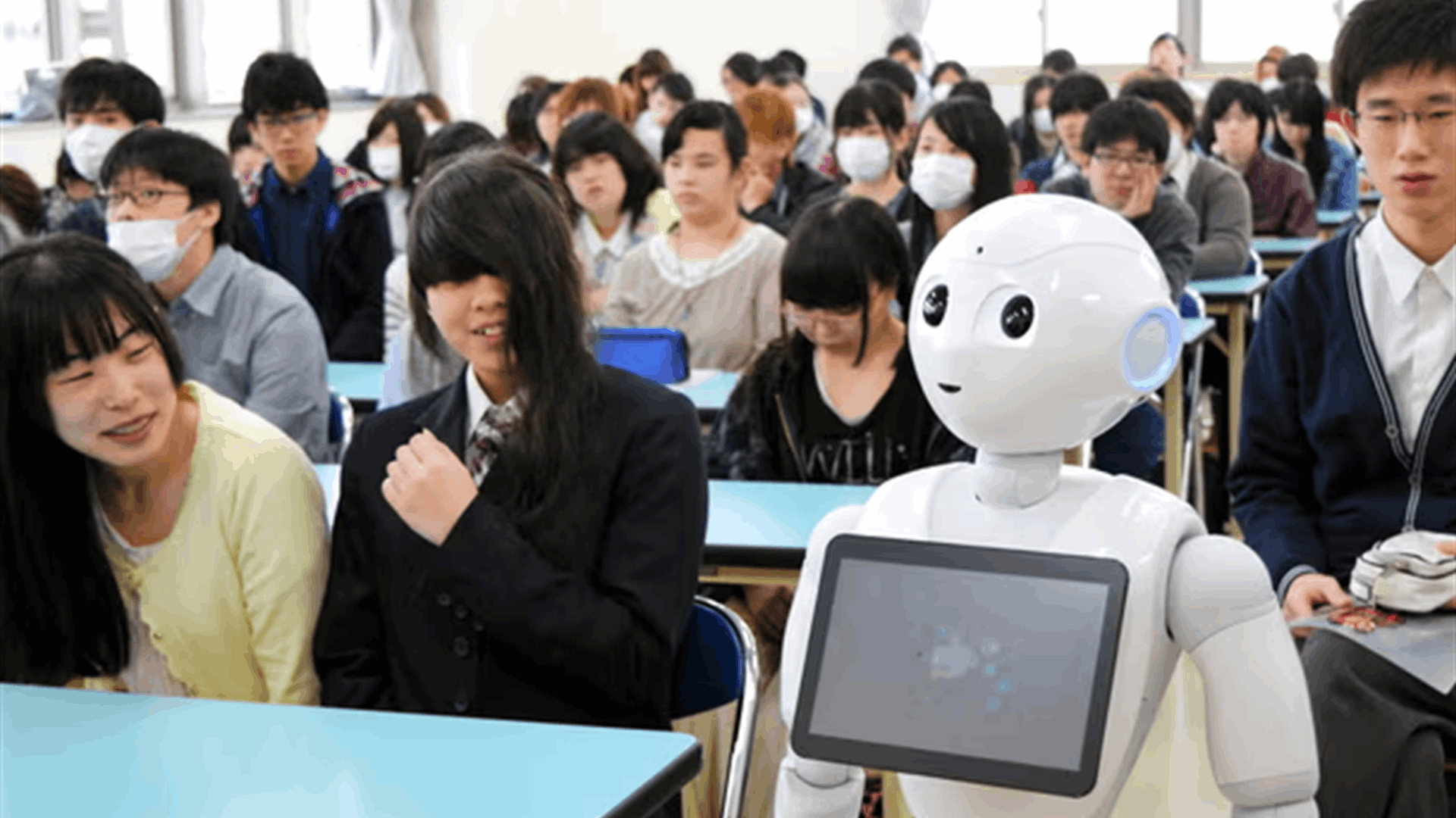 التلميذ يتمثل في الفصل بروبوت في مدارس مدينة يابانية