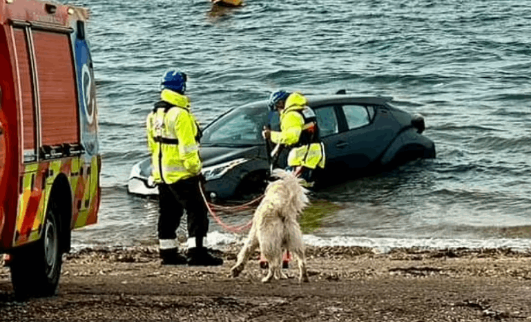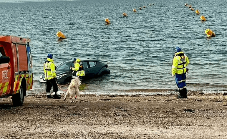 ومع وصول المد، اتصلا بخفر السواحل لطلب المساعدة بعد أن حاصرت المياه سيارتهما.