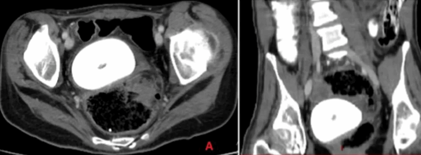 وكشف التصوير المقطعي للحوض والبطن عن السبب.