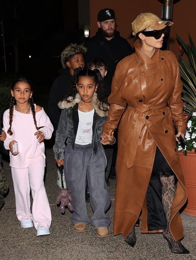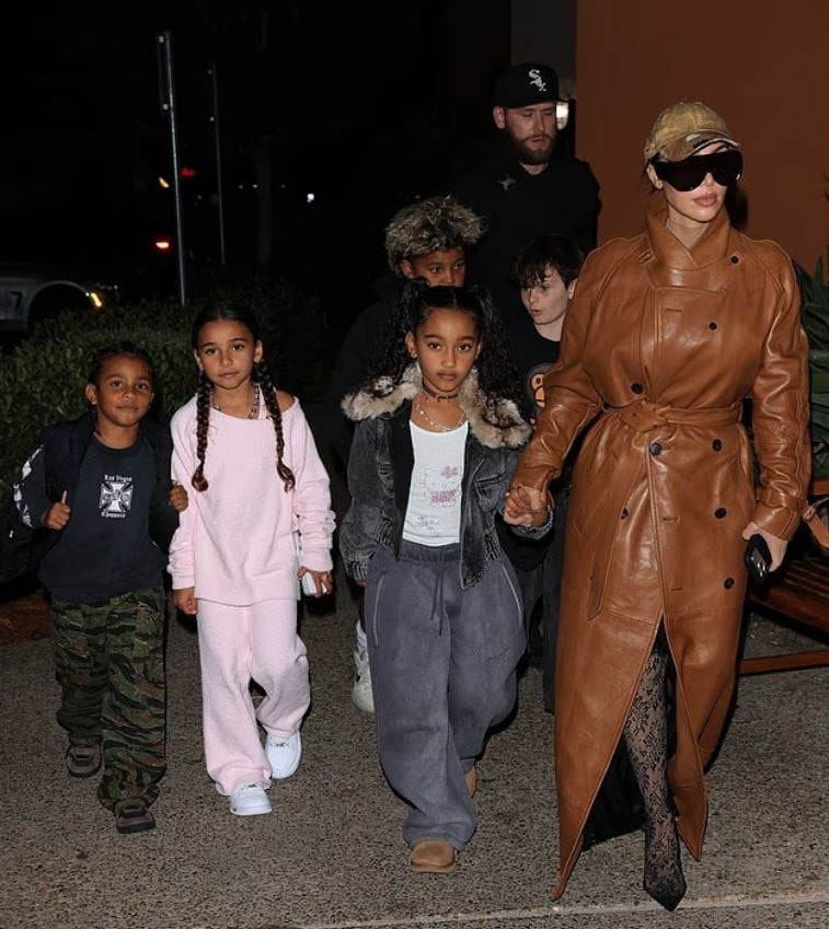 شوهدت نجمة تلفزيون الواقع كيم كارداشيان، التي صدمت معجبيها في وقت سابق عندما نشرت صورًا مع بريتني سبيرز، برفقة ثلاثة من أطفالها الأربعة وابنة أختها مساء السبت الماضي في لوس أنجلوس.