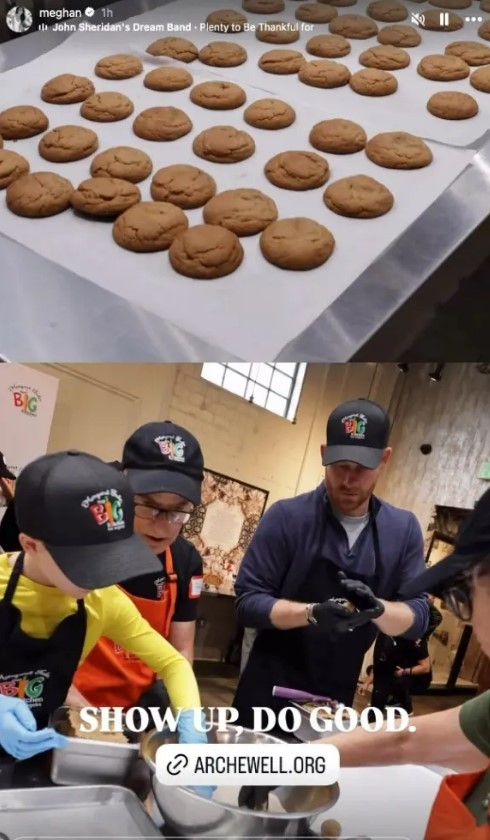 وأظهرت إحدى الصور ميغان (44 عاماً) وهاري (41 عاماً) وهما يضعان عجينة الكوكيز في الصينية، فيما كانت ليليبت تراقب عن قرب، مرتديةً فستاناً أحمر مقلّماً وقبعة سوداء وشعرها مضفوراً. أمّا أرتشي، فظهر بحماس وهو يعجن العجينة بيده مرتدياً قميصاً أصفر طويل الأكمام.