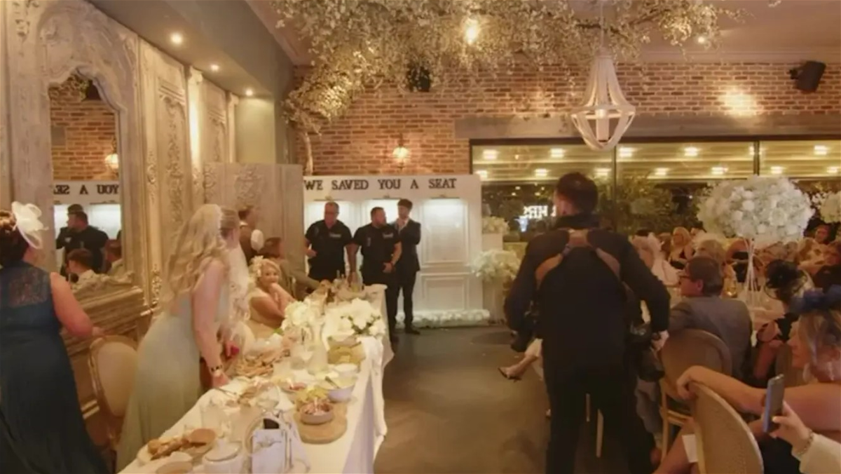 في مشهد طريف أربك الحضور، تحوّل حفل زفاف في بريطانيا إلى حديث مواقع التواصل، بعدما اقتحم أشخاص متنكرون بزيّ الشرطة القاعة وهم يبحثون عن والد العروس، ما أثار دهشة الضيوف، قبل أن يتبيّن بعد دقائق أنّ الأمر لم يكن سوى مفاجأة غنائية مدبّرة.