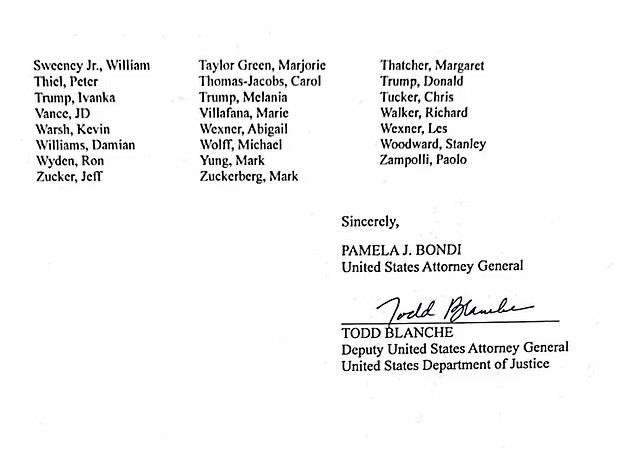 SCOOP: The Department of Justice has sent over a letter to Congress outlining why it made redactions to the Epstein files. The six-page letter also includes a list of all "government officials and politically exposed persons" in the files. pic.twitter.com/aRCmS2p1Bg