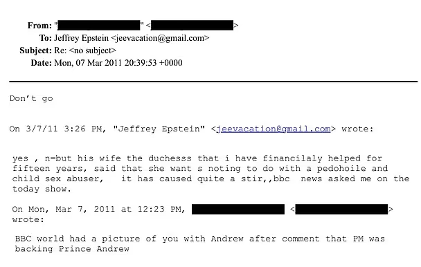 كما أظهرت المراسلات أن سارة فيرغسون ظلت على اتصال وثيق بإبستين حتى بعد إدانته وسجنه، بل وقدمت له اعتذارًا خاصًا بعد أن وصفته علنًا بأنه مجرم جنسي، مؤكدة في رسالة أنه كان "صديقًا كريمًا ومخلصًا".
