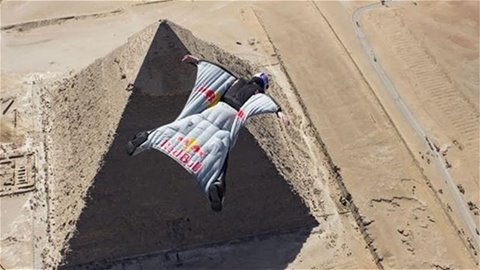 قام الرياضي ريد بل سيدريك دومون البالغ من العمر 42 عاماً قفزة تاريخية فوق أهرامات الجيزة استغرقت ثواني معدودة في الهواء شكَّلت رحلة خالدة في قلب التاريخ الذي دخله دومون من بابه العريض بعدما أصبح أول شخص يقفز ببزة طيران من فوق أهرامات الجيزة ليهبط سالماً على الأرض. وهو عبَّر عن فرحته العارمة لإنجاز قفزة جديدة بنجاح، وللفرصة التي أتيحت له ليكون حاضراً "في قلب التاريخ وسط معالم تفوق التصوّر والخيال".