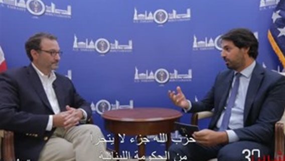 مساعد وزير الخارجية الأميركي لشؤون الشرق الأدنى في مقابلةٍ حصرية، نائب رئيس الحكومة غسان حاصباني ومستشار رئيس مجلس النواب علي حمدان.